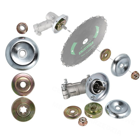 - 🔩 Kompletny zestaw: Zestaw zawiera wszystkie niezbędne elementy do montażu tarcz i noży, w tym podkładki, nakrętki i muszelki ochronne.