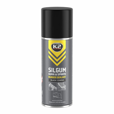 - K2 Silgum to gumowa powłoka w sprayu o elastycznych i uszczelniających właściwościach. Tworzy wodoodporną warstwę chroniącą przed korozją i czynnikami atmosferycznymi. Idealna do zabezpieczania dachów, rynien, kominów oraz elementów metalowych, drewnianyc